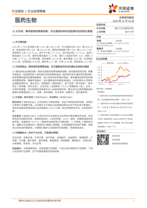【天风证券】【20201206】医药生物12月月报:静待医药政策落地期,关注重磅品种研发进展和优质细分赛道-13页