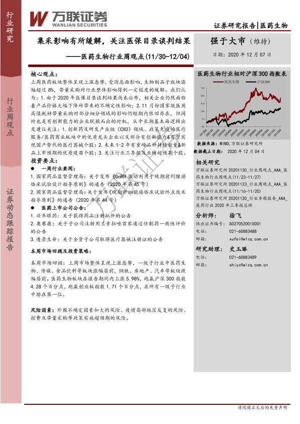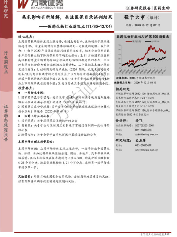 【万联证券】【20201207】医药生物行业周观点:集采影响有所缓解,关注医保目录谈判结果-8页