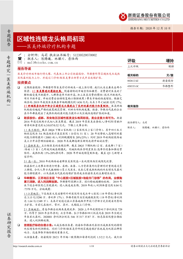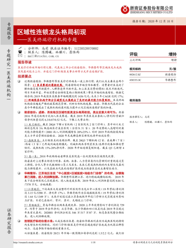 【浙商证券】【20201210】医美终端诊疗机构专题:区域性连锁龙头格局初现-18页