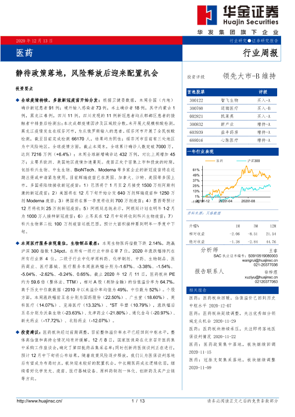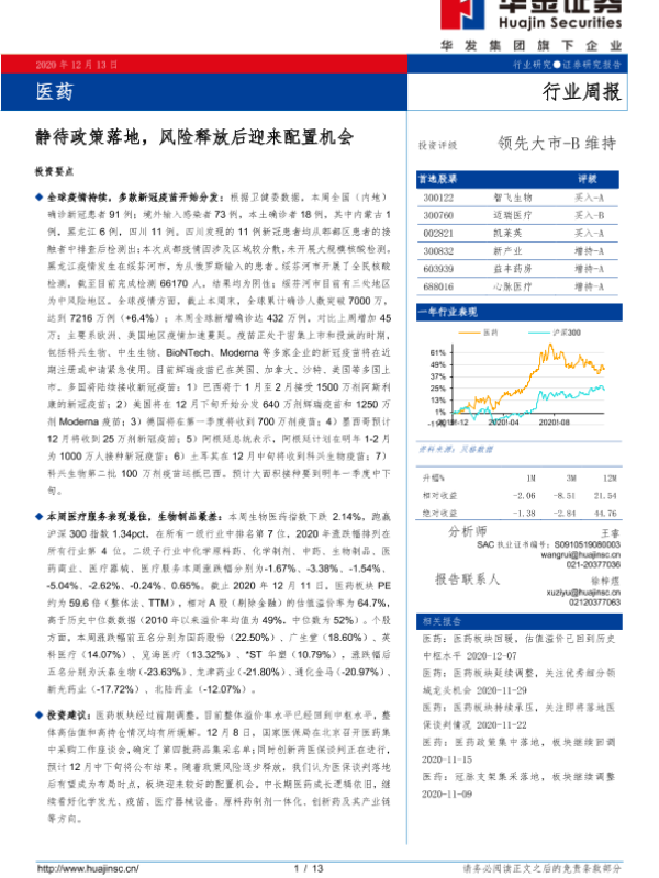 【华金证券】【20201213】医药行业周报:静待政策落地,风险释放后迎来配置机会-13页