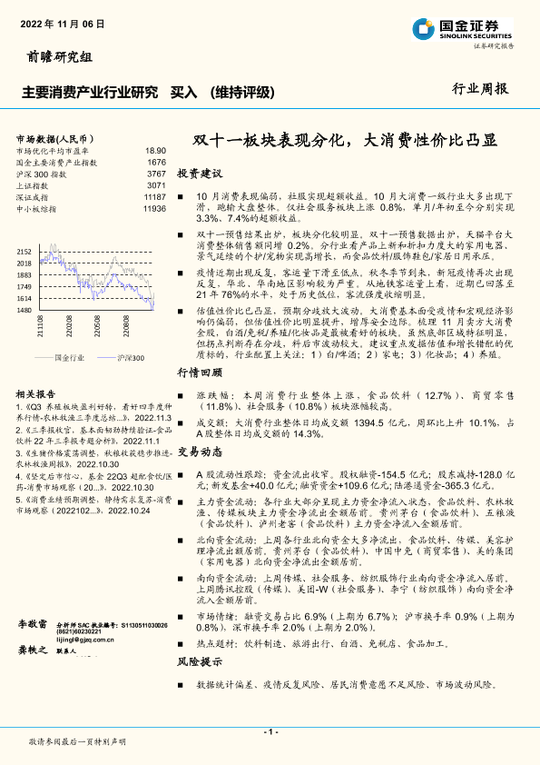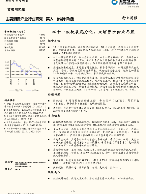 【国金证券】【20221106】主要消费产业行业周报:双十一板块表现分化,大消费性价比凸显-19页