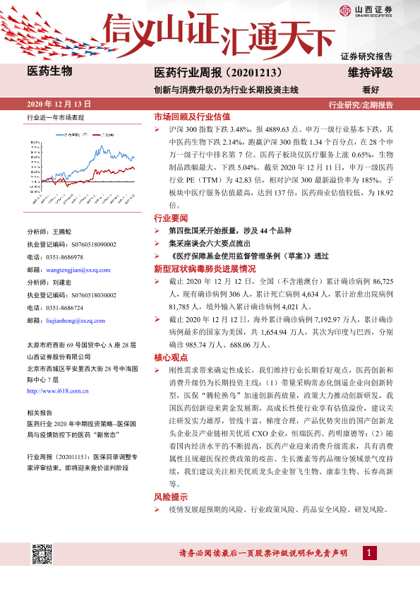 【山西证券】【20201213】医药生物行业周报:创新与消费升级仍为行业长期投资主线-7页