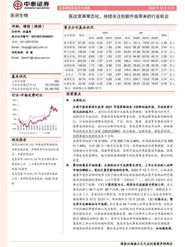 【中泰证券】【20201213】医改变革常态化,持续关注创新升级带来的行业机会-10页