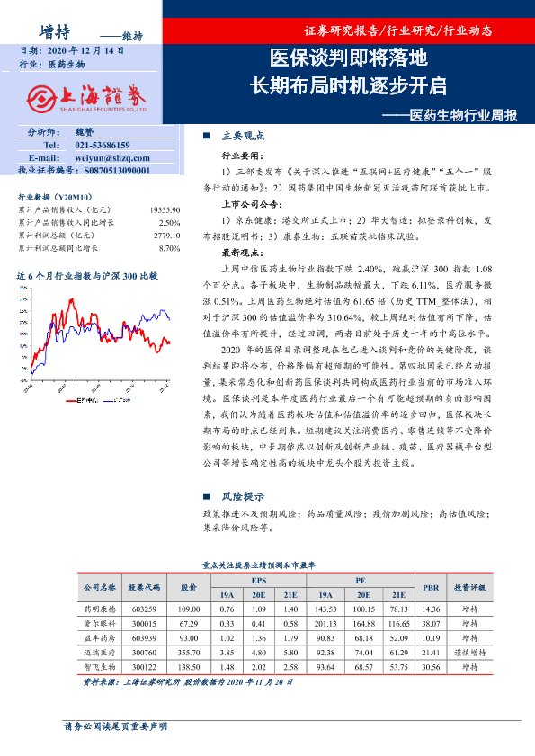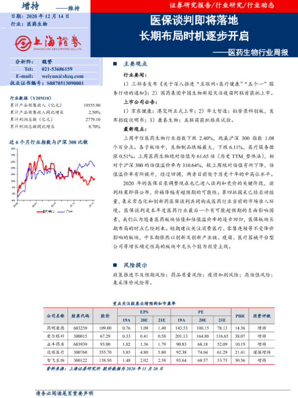 【上海证券】【20201214】医药生物行业周报:医保谈判即将落地 长期布局时机逐步开启-9页