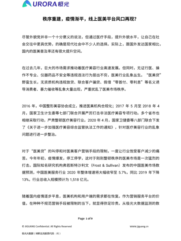 【极光(Aurora Mobile)】【20201218】医美:秩序重建,疫情渐平,线上医美平台风口再现?-9页