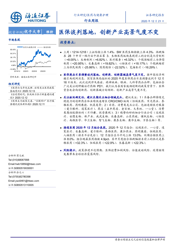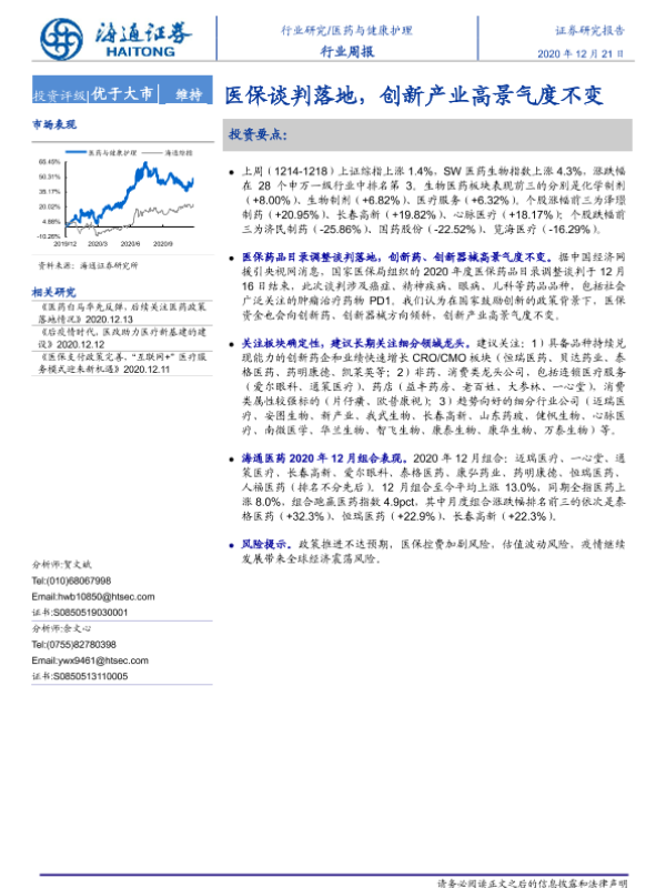 【海通证券】【20201221】医药与健康护理行业周报:医保谈判落地,创新产业高景气度不变-5页