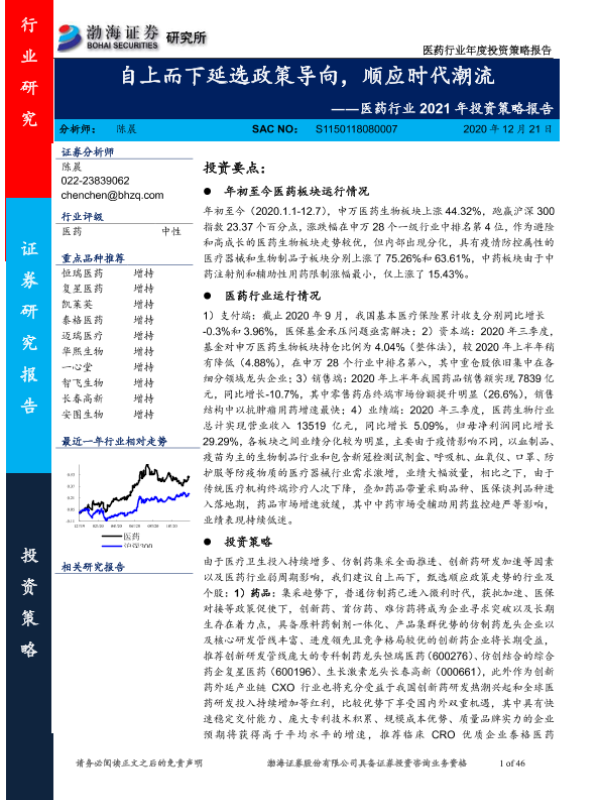【渤海证券】【20201221】医药行业2021年投资策略报告:自上而下延选政策导向,顺应时代潮流-46页