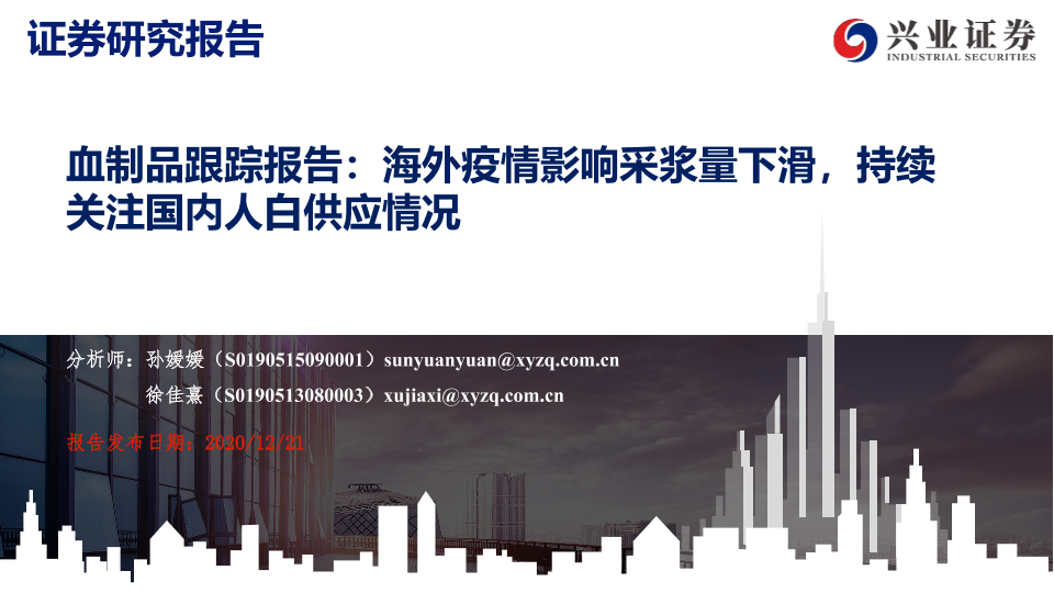 【兴业证券】【20201221】血制品跟踪报告:海外疫情影响采浆量下滑,持续关注国内人白供应情况-48页