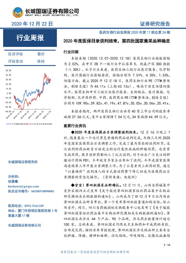 【长城国瑞证券】【20201222】2020年度医保目录谈判结束,第四批国家集采品种确定-14页