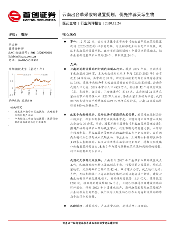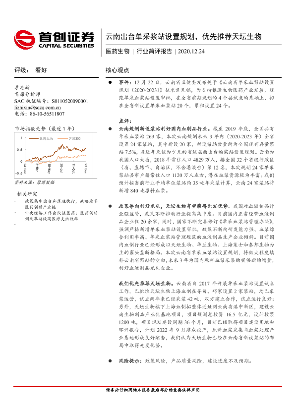 【首创证券】【20201224】云南出台单采浆站设置规划,优先推荐天坛生物-2页