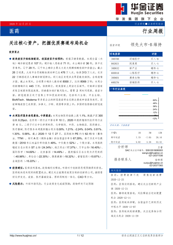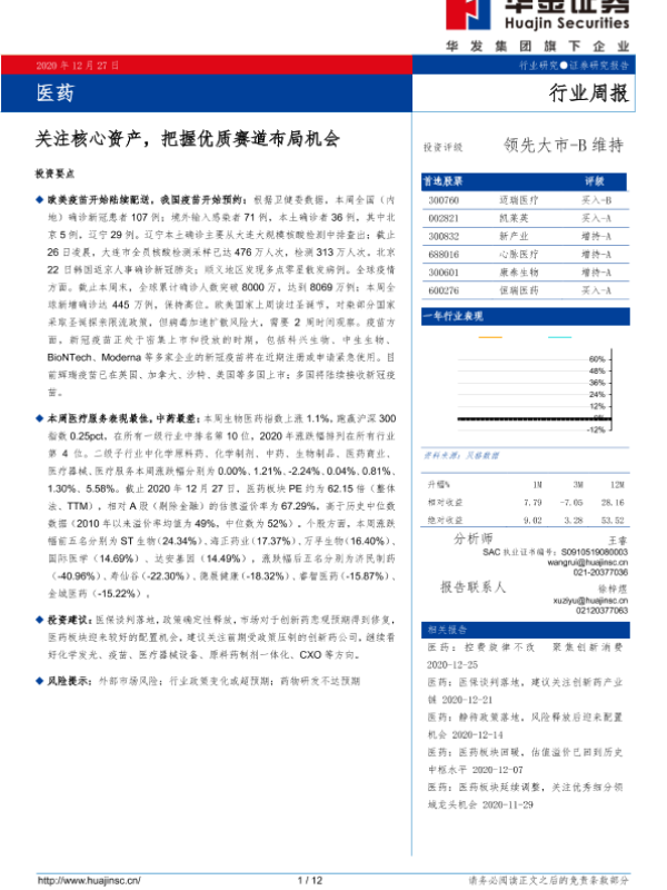 【华金证券】【20201227】医药行业周报:关注核心资产,把握优质赛道布局机会-12页