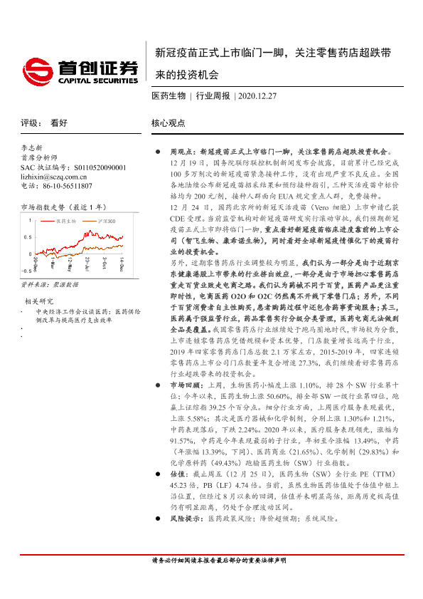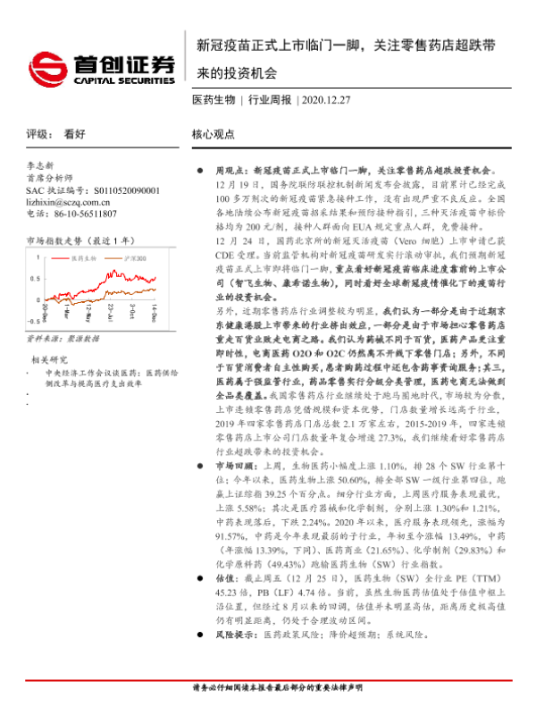【首创证券】【20201227】新冠疫苗正式上市临门一脚,关注零售药店超跌带来的投资机会-10页