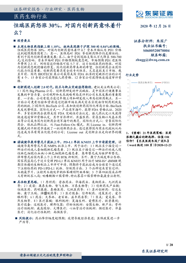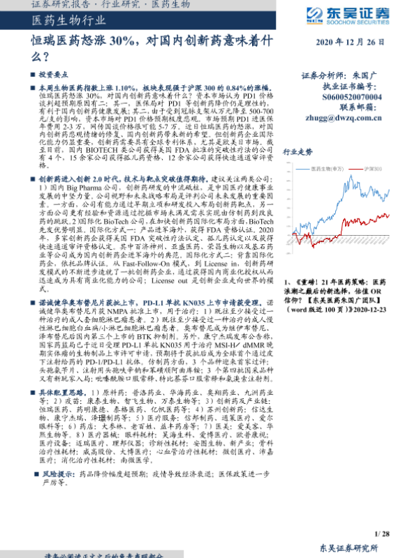 【东吴证券】【20201226】医药生物行业跟踪周报:恒瑞医药怒涨30%,对国内创新药意味着什么?-28页
