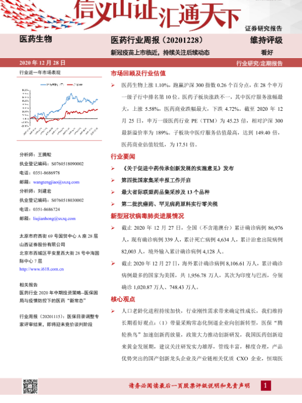 【山西证券】【20201228】医药行业周报:新冠疫苗上市临近,持续关注后续动态-8页