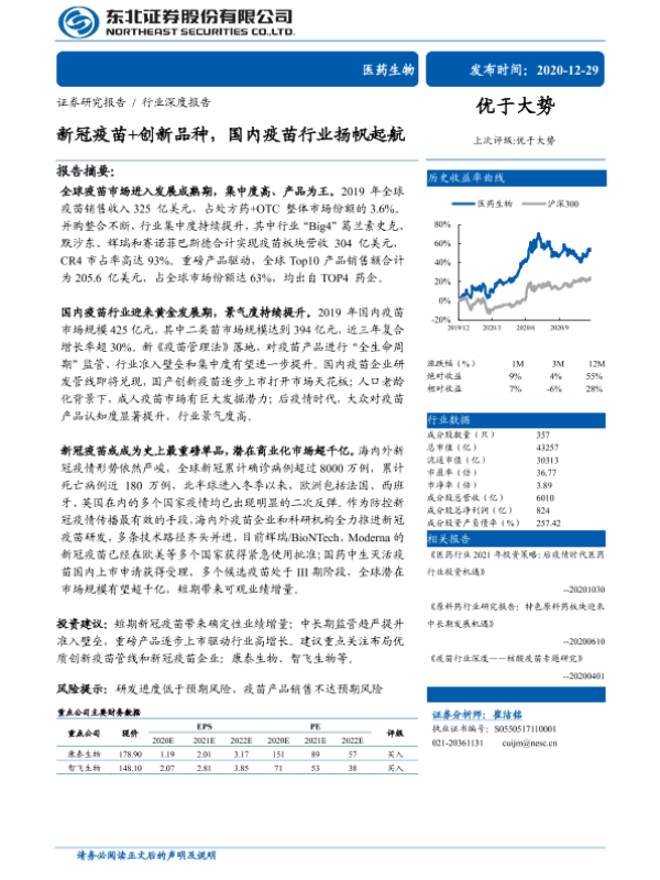 【东北证券】【20201229】医药生物行业深度报告:新冠疫苗+创新品种,国内疫苗行业扬帆起航-38页