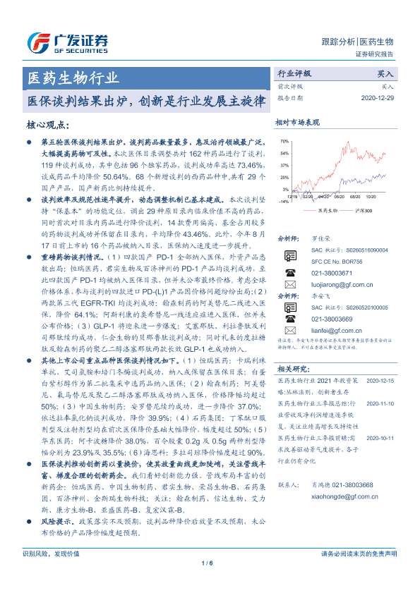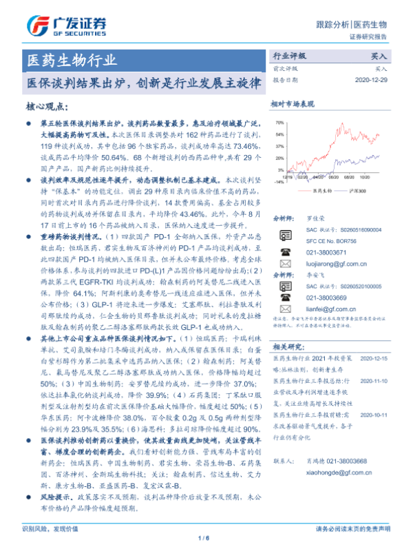 【广发证券】【20201229】医药生物行业跟踪分析:医保谈判结果出炉,创新是行业发展主旋律-6页