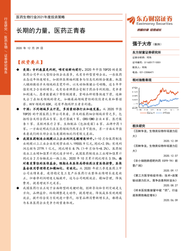 【东方财富证券】【20201229】医药生物行业2021年度投资策略:长期的力量,医药正青春-51页