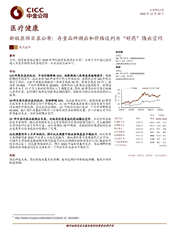 【中金公司】【20201229】医疗健康行业新版医保目录公布:存量品种调出和价格谈判为“好药”腾出空间-8页