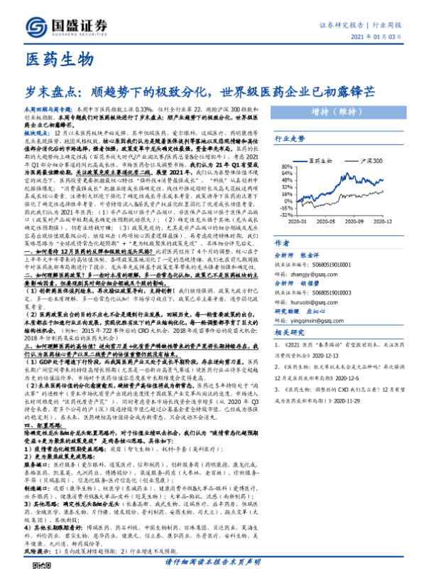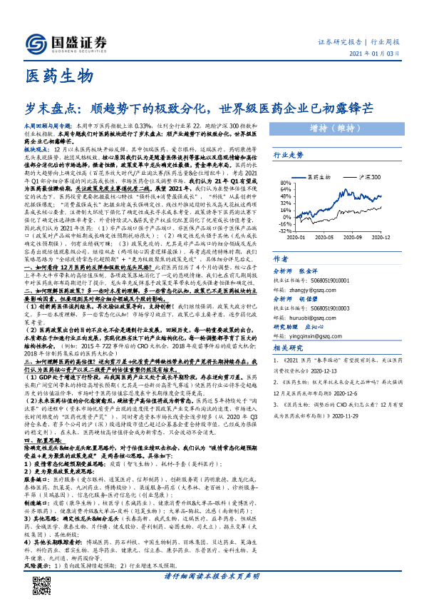 【国盛证券】【20210103】医药生物行业周报:岁末盘点:顺趋势下的极致分化,世界级医药企业已初露锋芒-31页