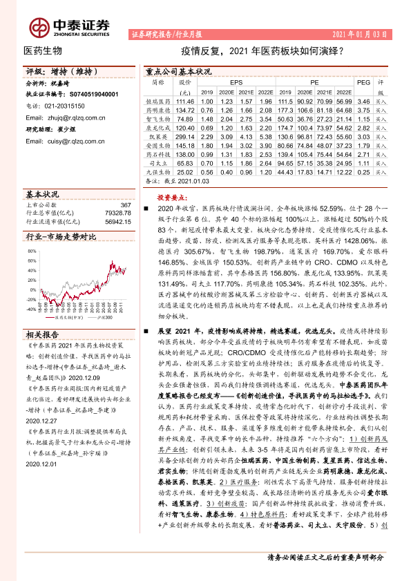 【中泰证券】【20210103】疫情反复,2021年医药板块如何演绎?-24页