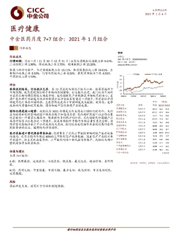 【中金公司】【20210104】中金医药月度7+7组合:2021年1月组合-10页