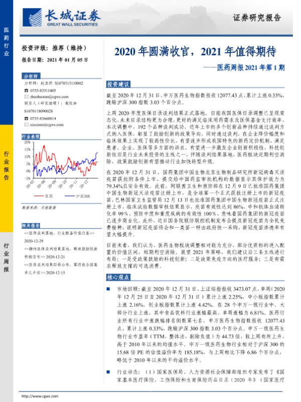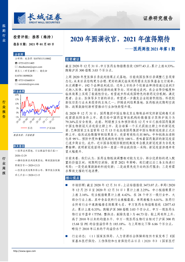 【长城证券】【20210105】2021年第1期医药周报:2020年圆满收官,2021年值得期待-19页