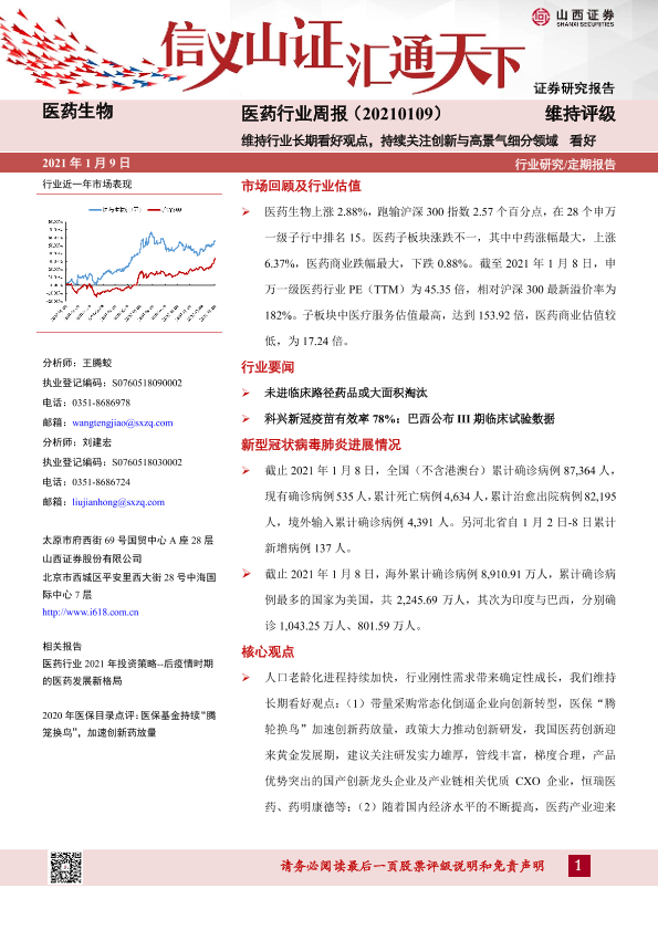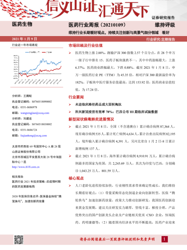 【山西证券】【20210109】医药行业周报:维持行业长期看好观点,持续关注创新与高景气细分领域-8页