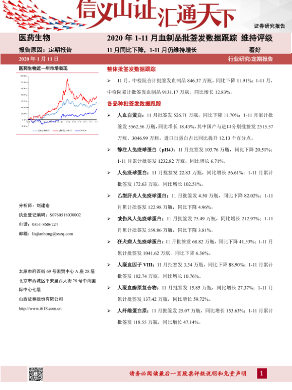 【山西证券】【20210111】2020年1-11月血制品批签发数据跟踪报告-24页