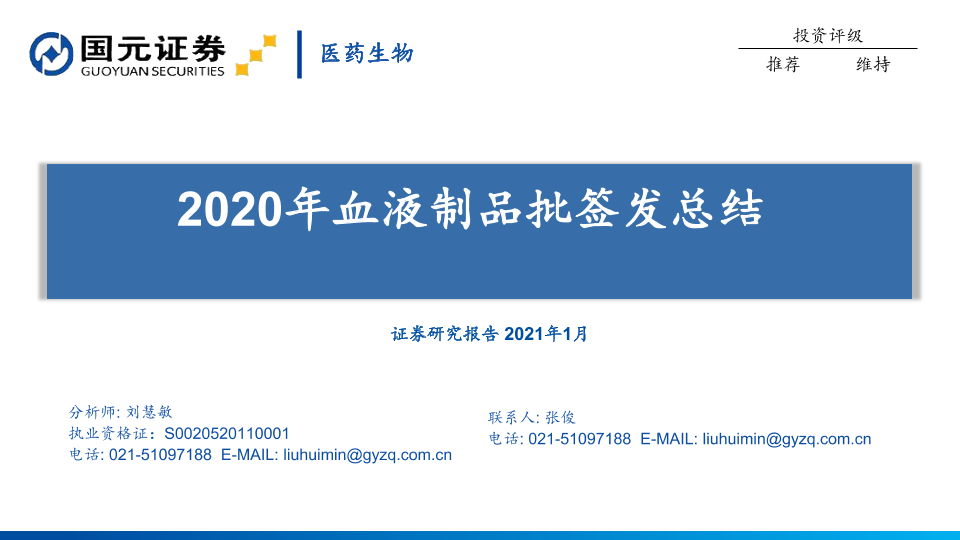 【国元证券】【202101】2020年血液制品批签发总结-38页