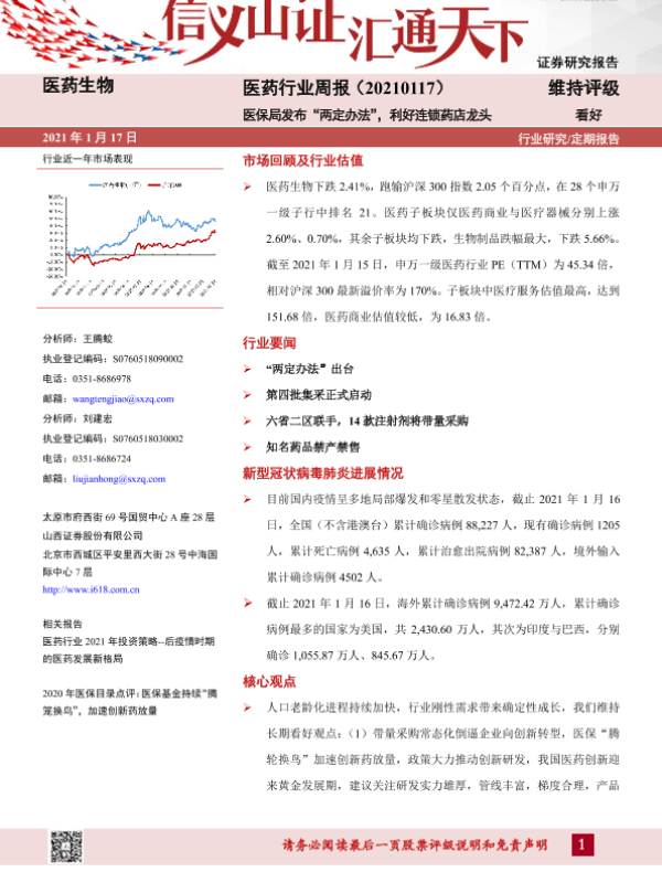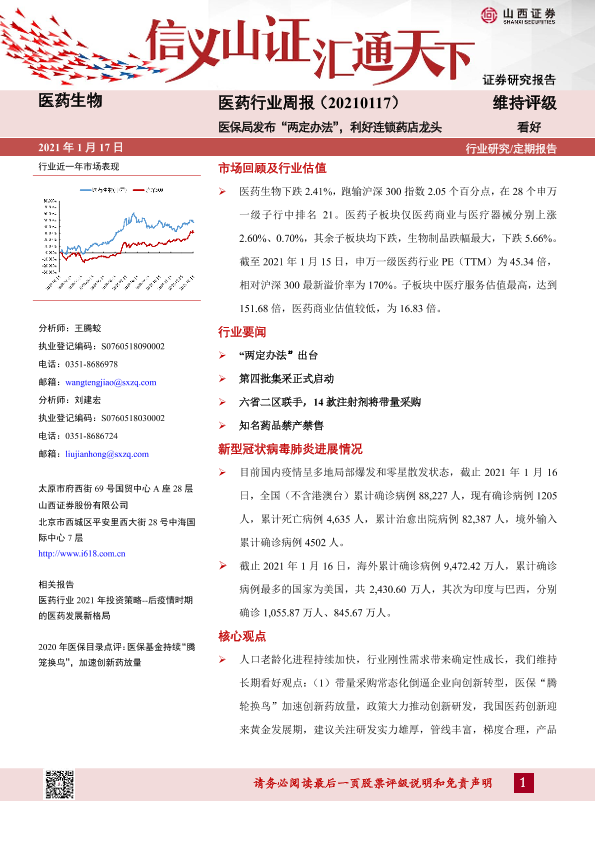 【山西证券】【20210117】医药行业周报:医保局发布“两定办法”,利好连锁药店龙头-8页