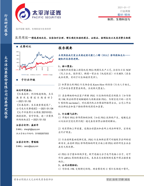 【太平洋证券】【20210117】医药周报:精选质地优良、估值相对合理、增长确定性强的药店、血制品、检测板块以及类消费生物药-20页