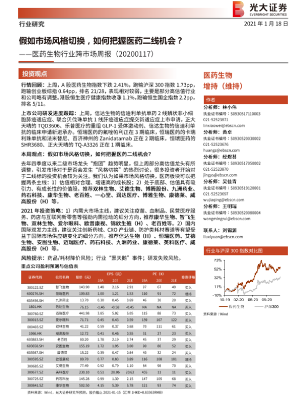 【光大证券】【20210117】医药生物行业跨市场周报:假如市场风格切换,如何把握医药二线机会?-33页