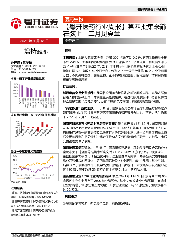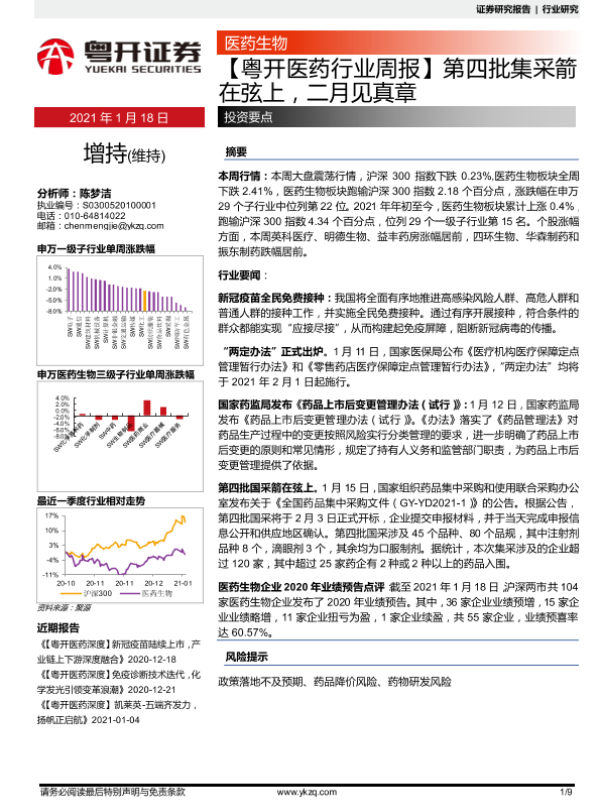 【粤开证券】【20210118】医药行业周报:第四批集采箭在弦上,事月见真章-9页