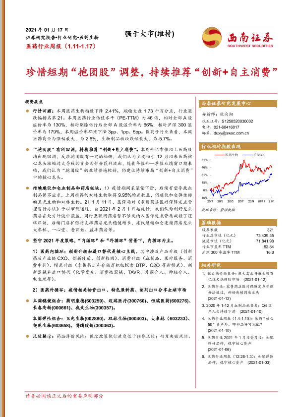 【西南证券】【20210117】医药行业周报:珍惜短期“抱团股”调整,持续推荐“创新+自主消费”-35页