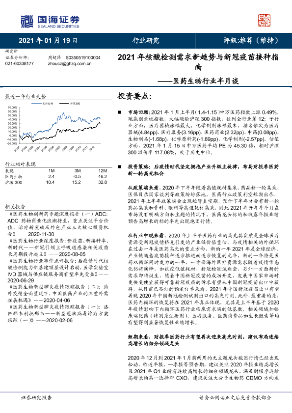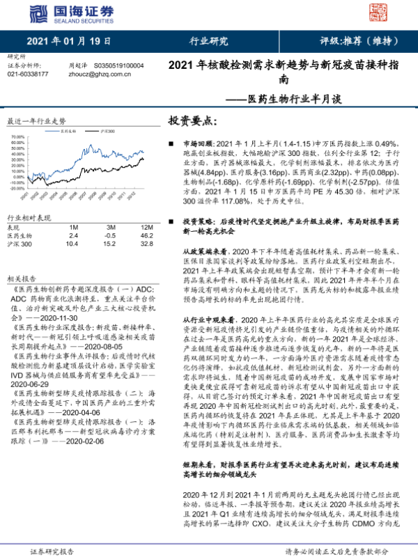 医药生物 投资策略 新冠疫苗 核酸检测 行业趋势