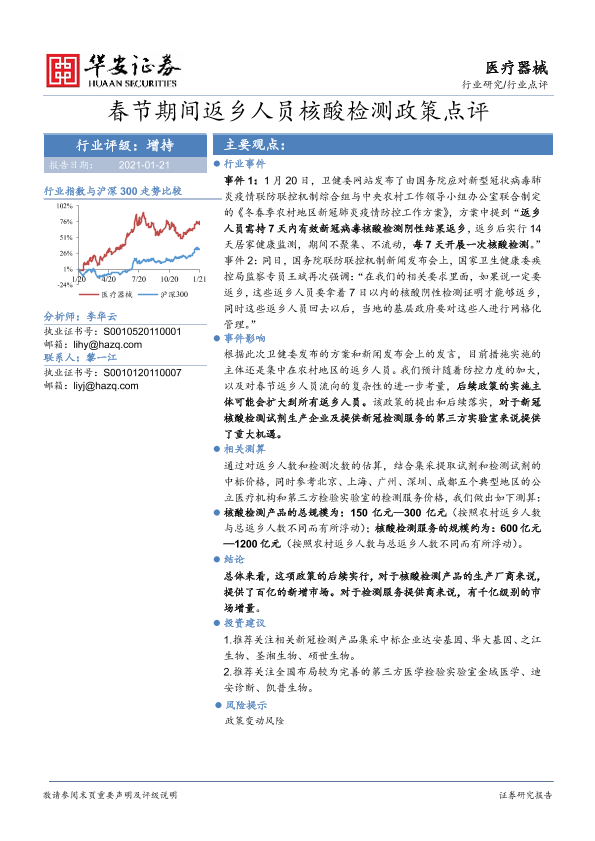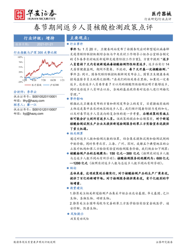 【华安证券】【20210121】春节期间返乡人员核酸检测政策点评-6页