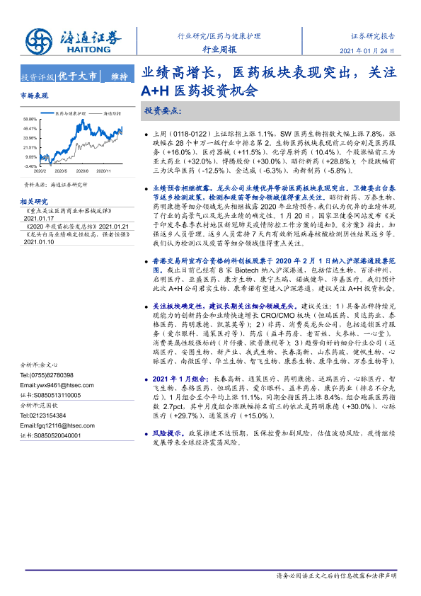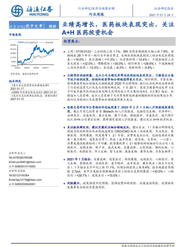 【海通证券】【20210124】医药与健康护理行业周报:业绩高增长,医药板块表现突出,关注A+H医药投资机会-5页