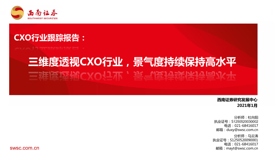 【西南证券】【202101】CXO行业跟踪报告:三维度透视CXO行业,景气度持续保持高水平-48页