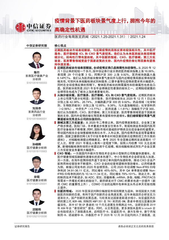 【中信证券】【20210124】疫情背景下医药板块景气度上行,拥抱今年的高确定性机遇-21页