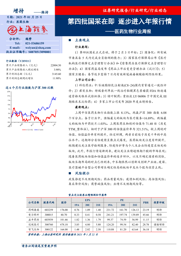 【上海证券】【20210125】医药生物行业周报:第四批国采在即 逐步进入年报行情-14页