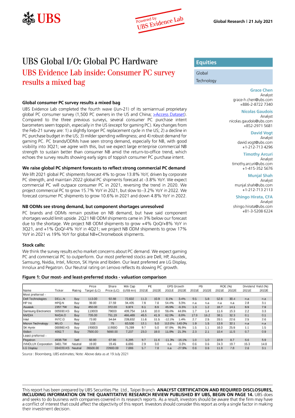 【瑞银】【20210721】全球科技行业-个人电脑硬件:消费者个人电脑调查结果喜忧参半-21页