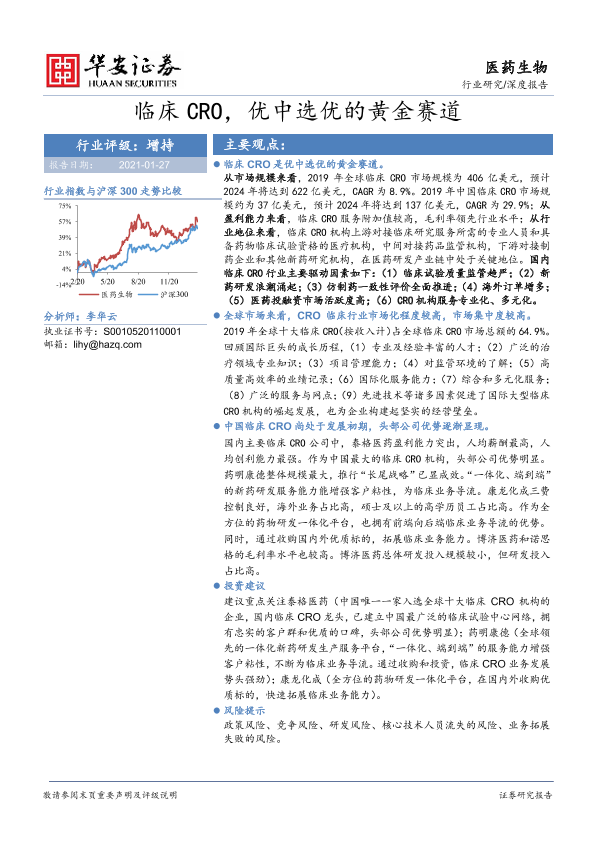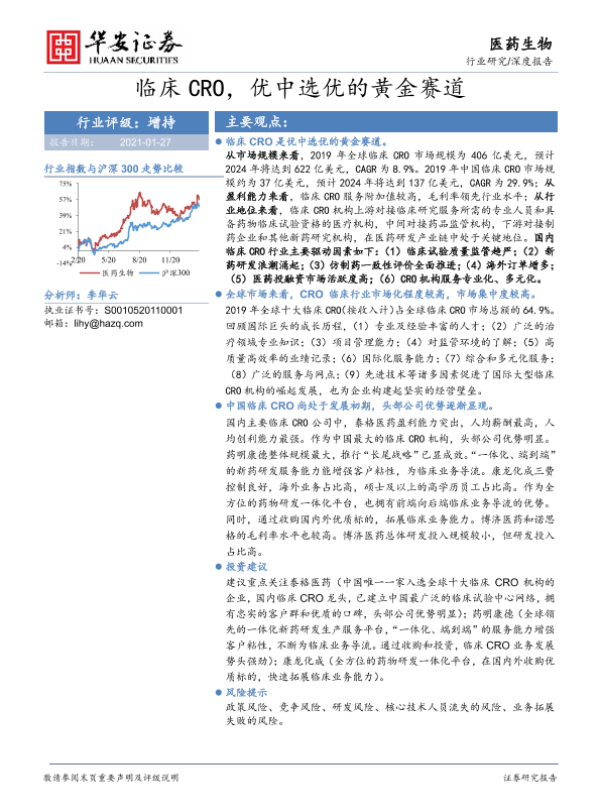 【华安证券】【20210127】临床CRO,优中选优的黄金赛道-42页
