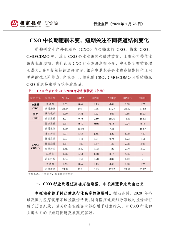 【招商银行】【20210128】CXO中长期逻辑未变,短期关注不同赛道结构变化-4页
