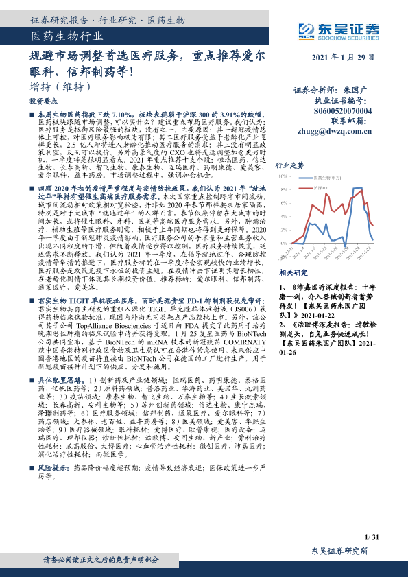 【东吴证券】【20210129】医药生物行业跟踪周报:规避市场调整首选医疗服务-31页