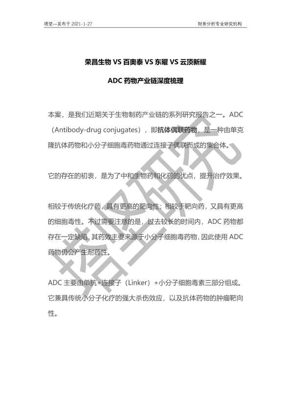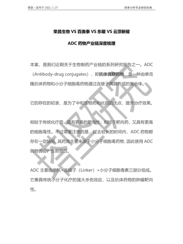 【塔坚】【20210127】荣昌生物VS百奥泰VS东曜VS云顶新耀:ADC药物产业链梳理-23页