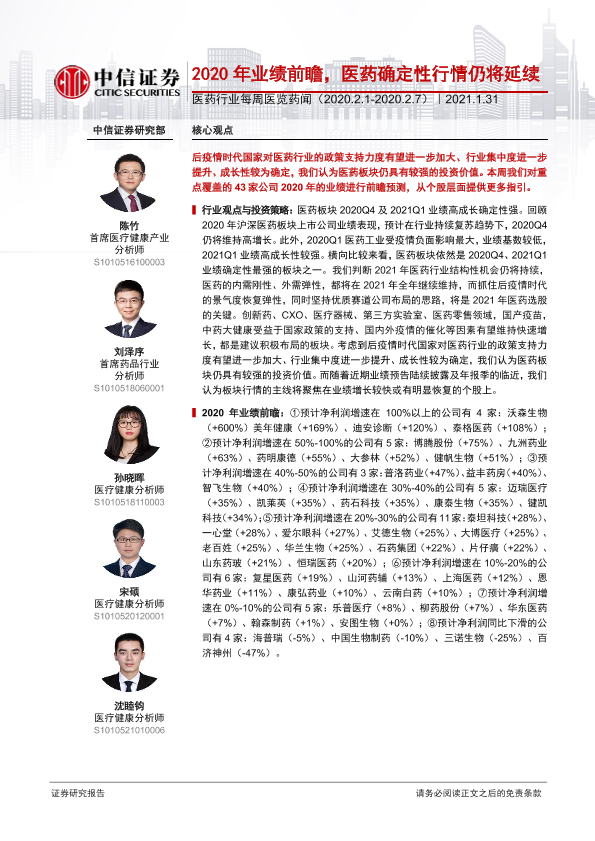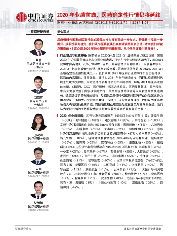 【中信证券】【20210131】2020年业绩前瞻,医药确定性行情仍将延续-19页