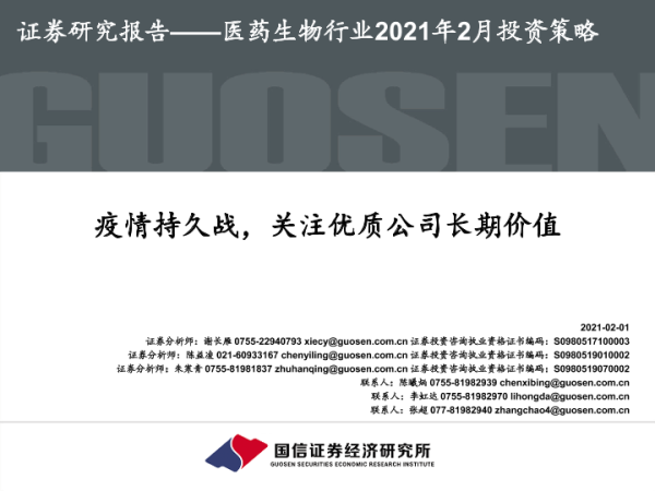 【国信证券】【20210201】医药生物行业2021年2月投资策略:疫情持久战,关注优质公司长期价值-44页