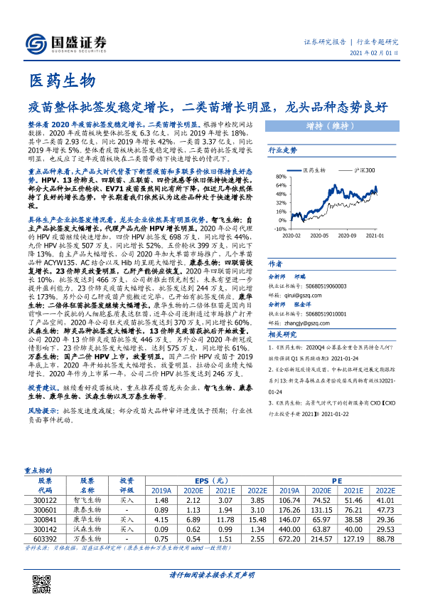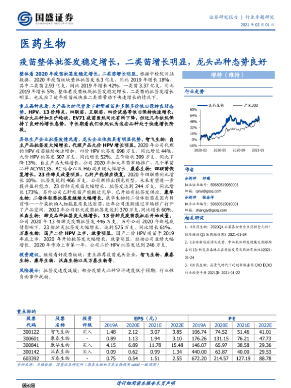 【国盛证券】【20210201】医药生物行业专题研究:疫苗整体批签发稳定增长,二类苗增长明显,龙头品种态势良好-23页