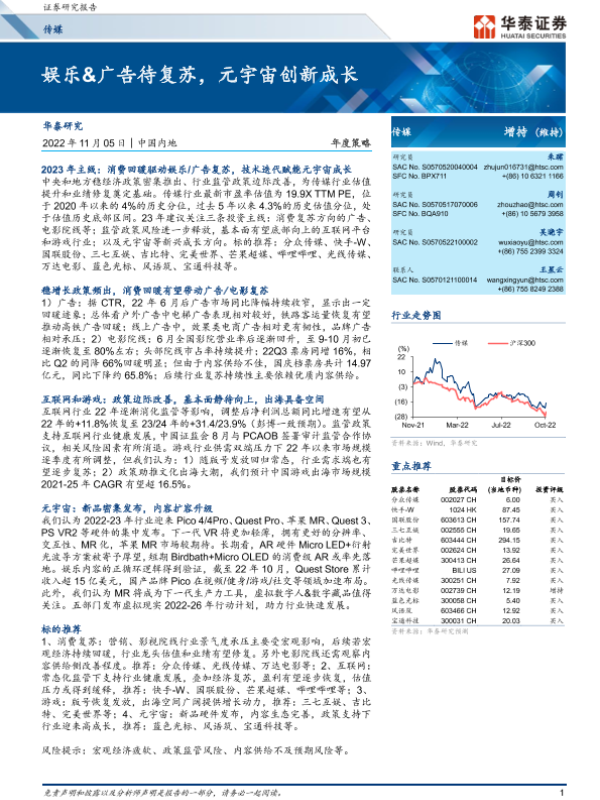 【华泰证券】【20221105】传媒行业年度策略:娱乐&广告待复苏,元宇宙创新成长-37页