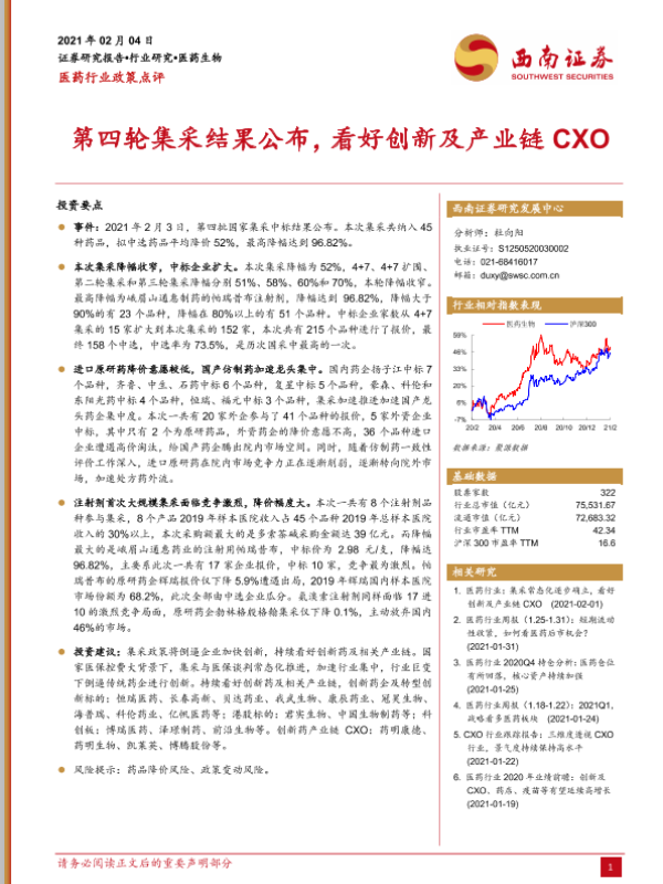 【西南证券】【20210204】第四轮集采结果公布,看好创新及产业链CXO-6页